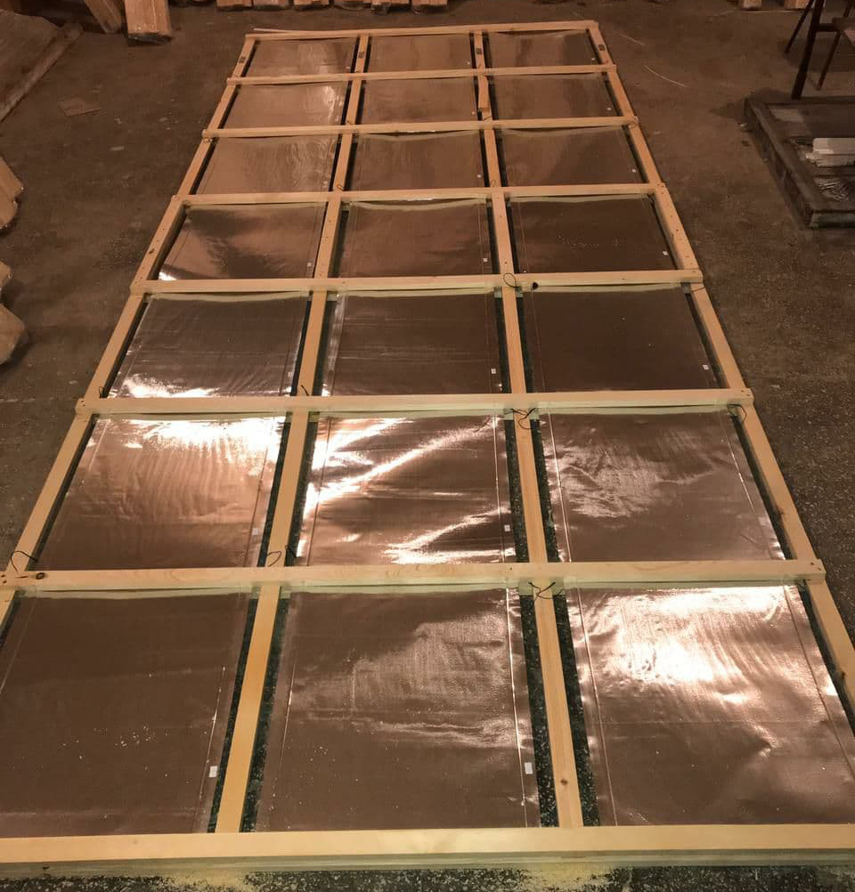 - На каждую рамку устанавливаются 3-4 нагревателя (в зависимости от комплектации) размером 0,5 x 3,0 м.
