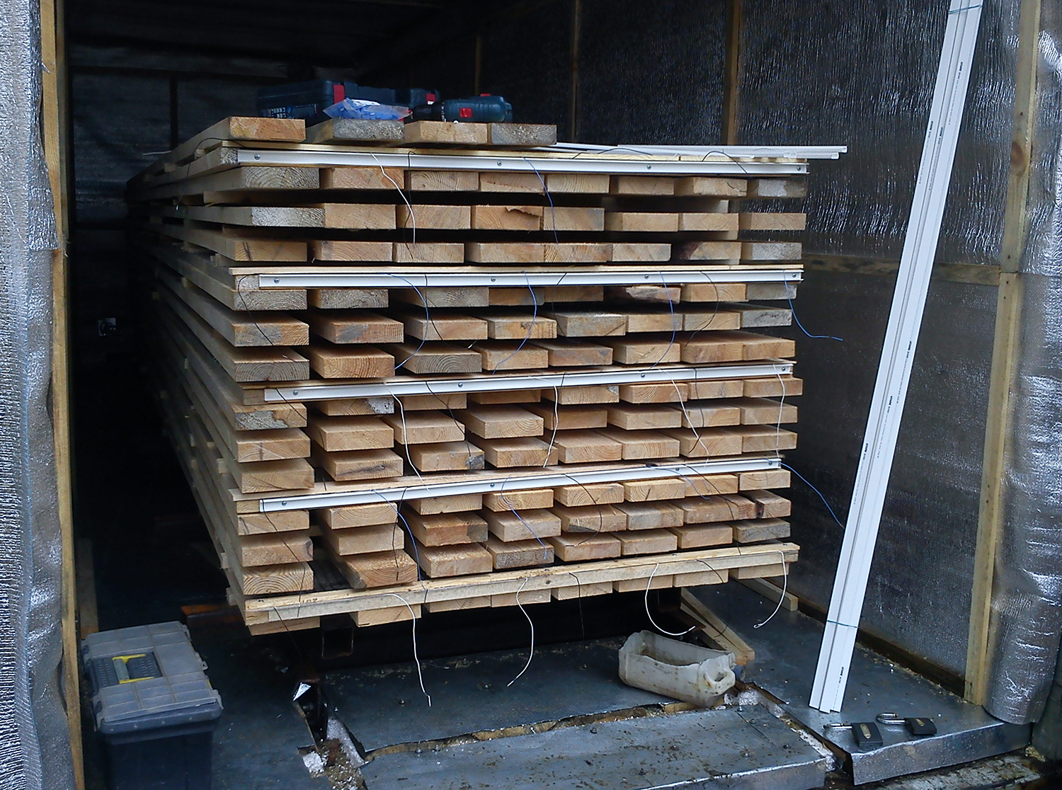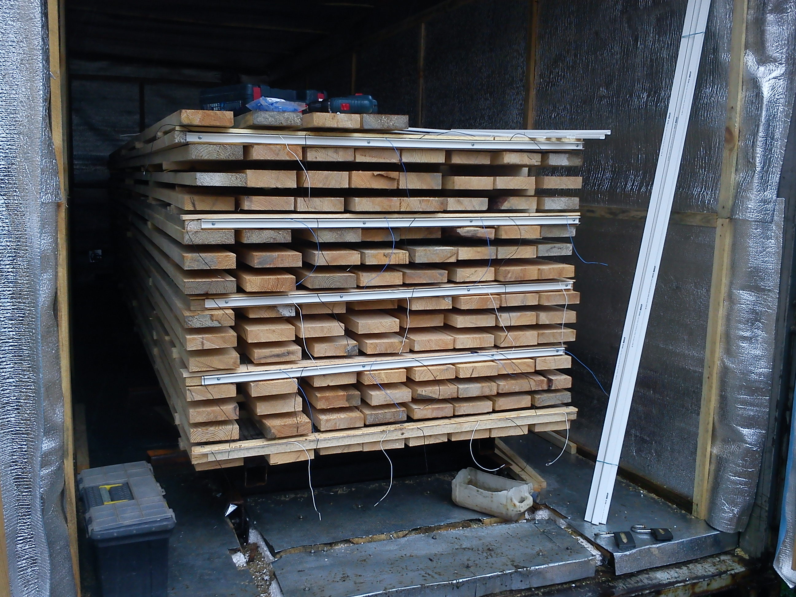 - Объём помещения должен быть в 5–7 раз больше объёма древесины в штабеле. Например, для 5 м³ древесины требуется помещение не менее 36 м³.