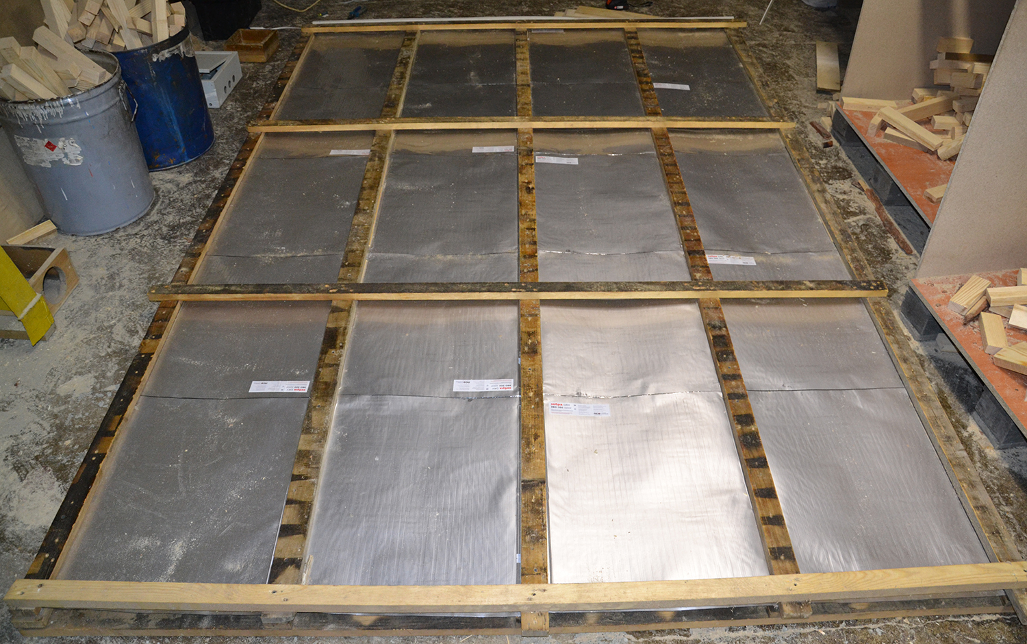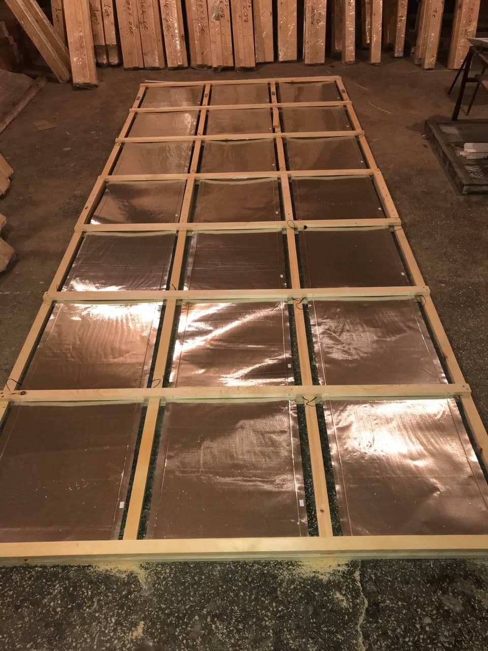 - Из брусков сечением 25 x 50 мм собираются деревянные рамки размером 2,3 x 3,0 м.